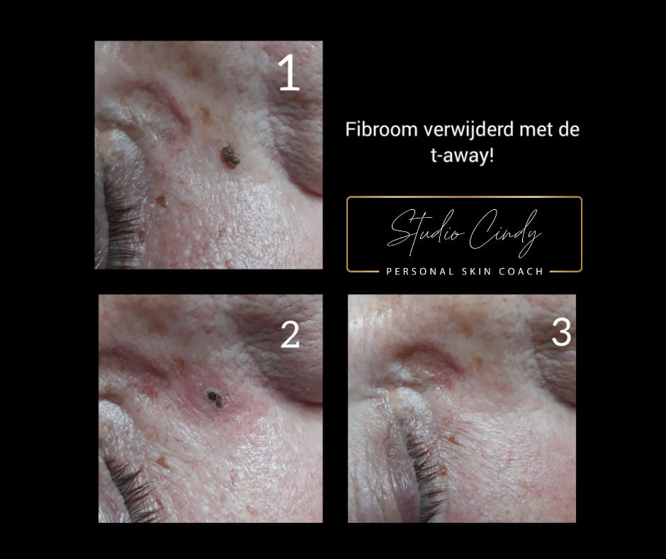 Desiree had een steelwratje/fibroom net onder haar oog. Dit vond ze hinderlijk. Vaak komen deze voor in de hals of onder de oksel. Maar ook kunnen ze op je gezicht zitten. Met de T-Away behandelde ik de plek slechts 5 minuten. Desiree was heel erg blij met het resultaat.